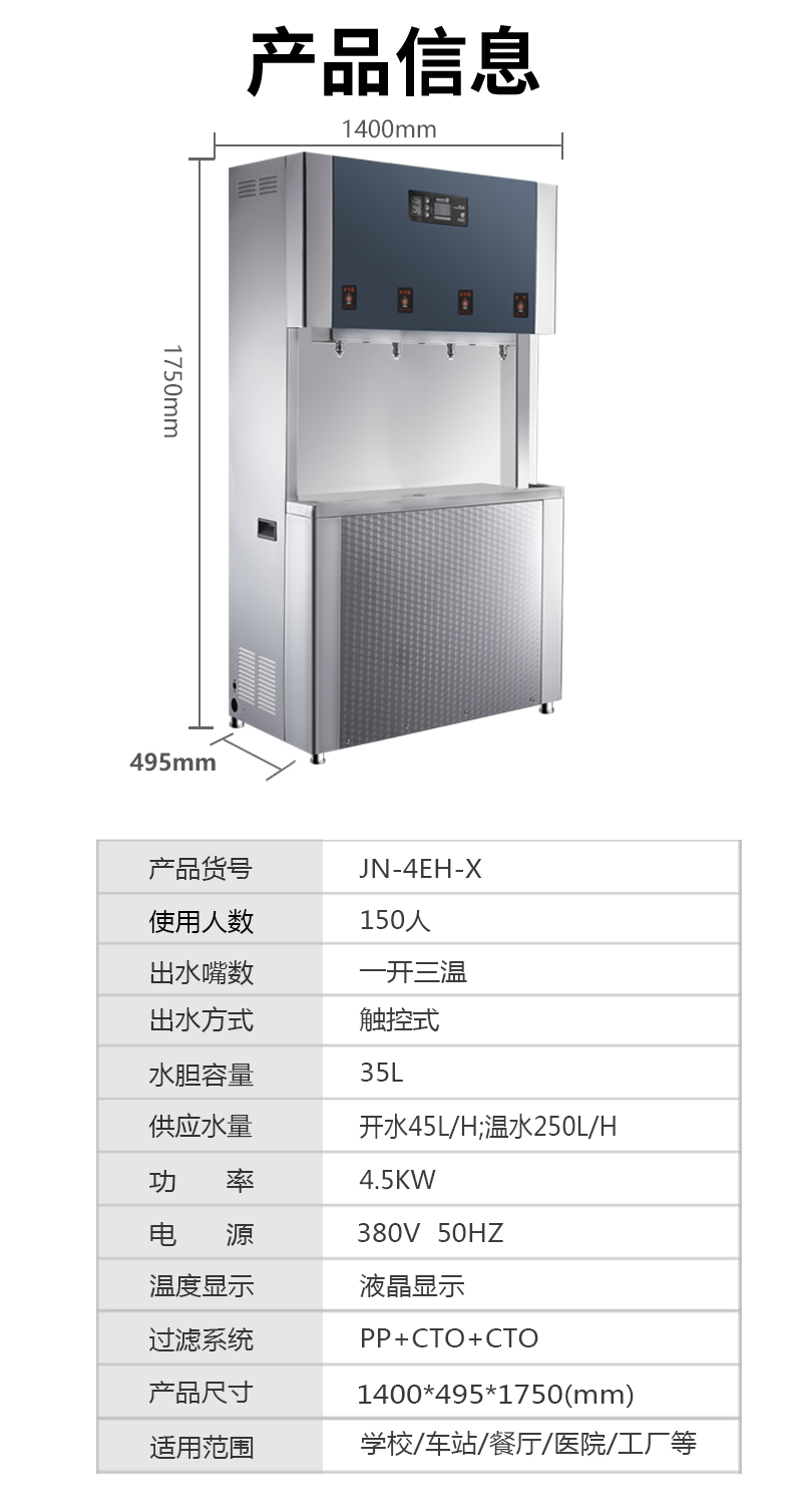 供水量:開水45升/時 溫開水250升/時